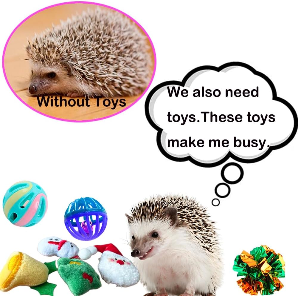 VERSATILE SET: 10 pcs Complete enrichment package featuring various toys designed specifically for hedgehog play and mental stimulation
