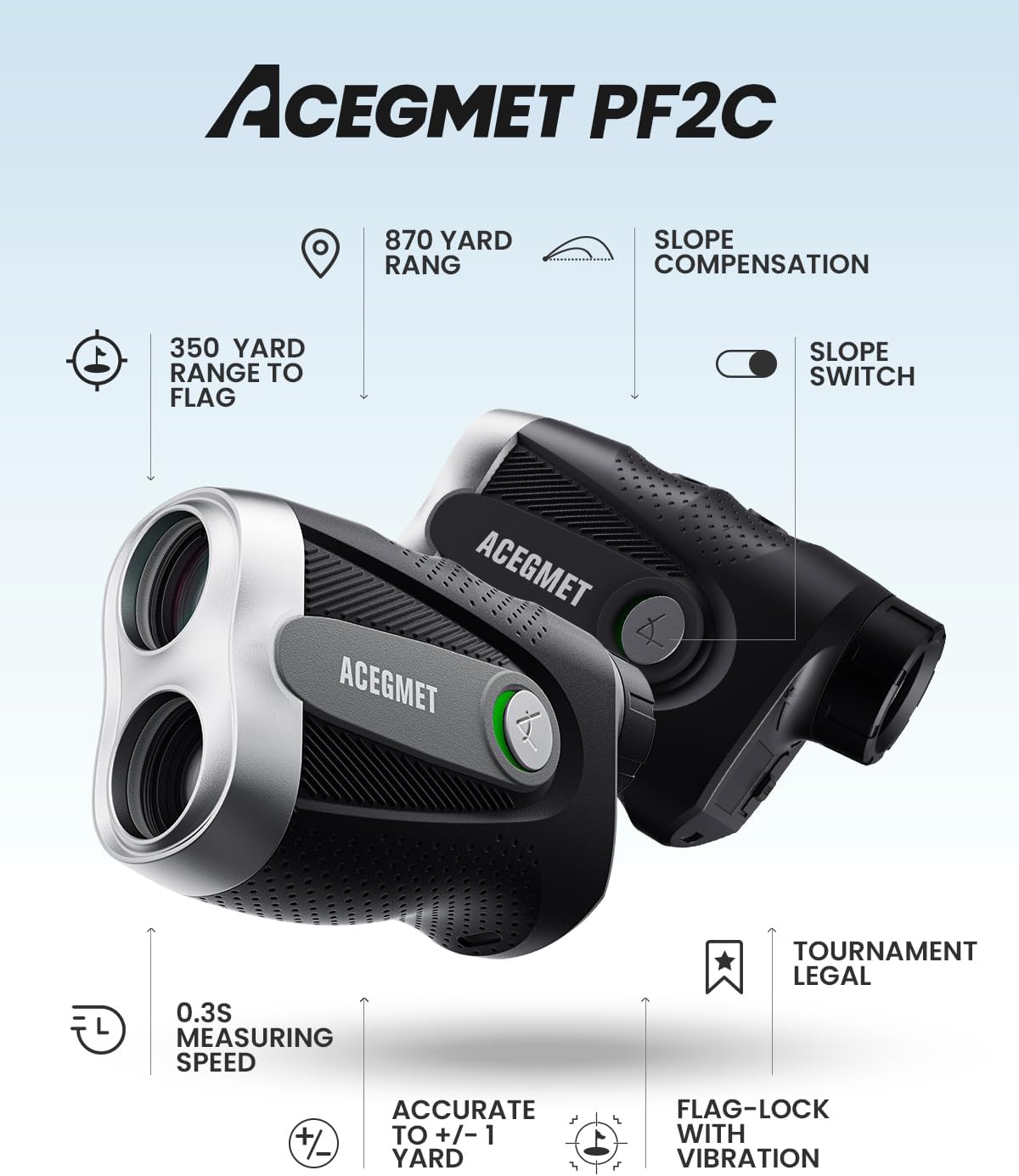 Experience Precision Like Never Before: Elevate your game with the ACEGMET PF2C golf laser rangefinder. Delivering pinpoint accuracy, it simplifies club selection and enhances your play. With an adjustable slope mode, effortlessly manage elevation changes or switch it off for tournament play. Achieve unparalleled precision and take your golfing performance to the next level.