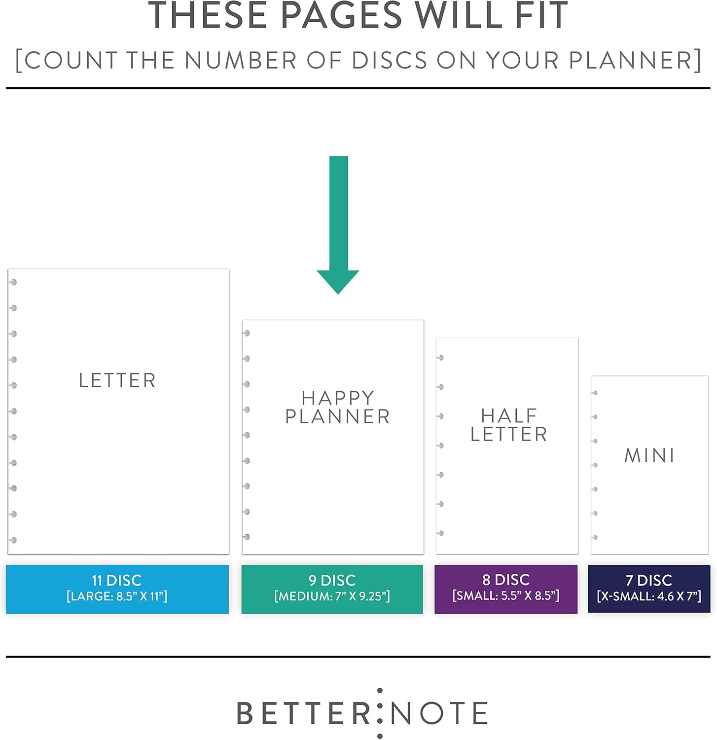 COMPATIBLE: BetterNote pages, dividers, and covers are compatible with other disc systems like The Happy Planner, Levenger Circa, ARC, TUL, etc. Please note: Dividers, covers, and other pages do not come with this set but can be purchased separately.