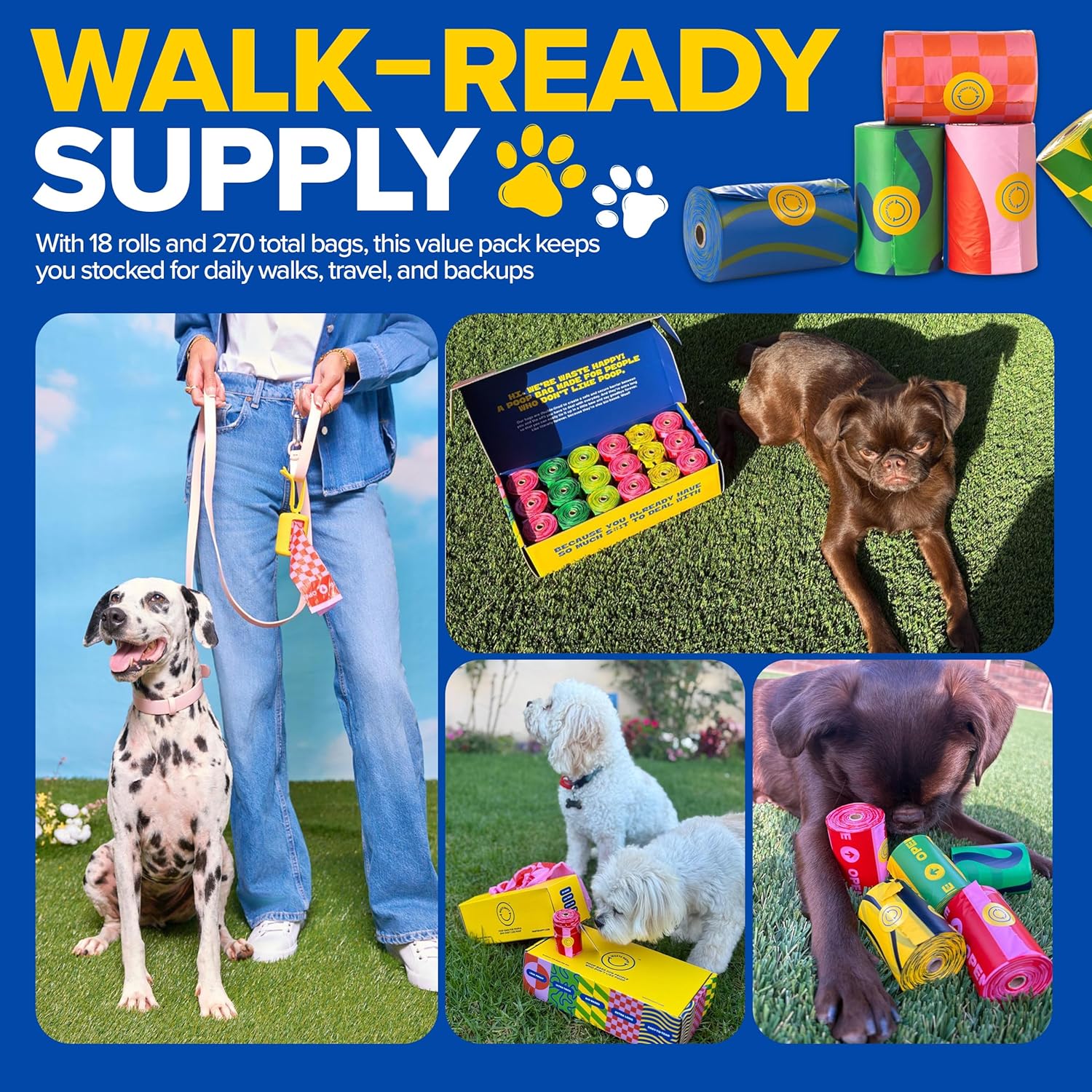 5. VALUE PACK OF 270 BAGS – BIGGER, LONGER, THICKER ROLLS: This pack includes 18 premium rolls with a total of 270 bags. The rolls are intentionally made bigger, longer, and thicker than standard versions and are designed to fit ONLY Waste Happy dispensers for the best dispensing performance. Perfect for daily walks, travel, and keeping spares handy everywhere you go.