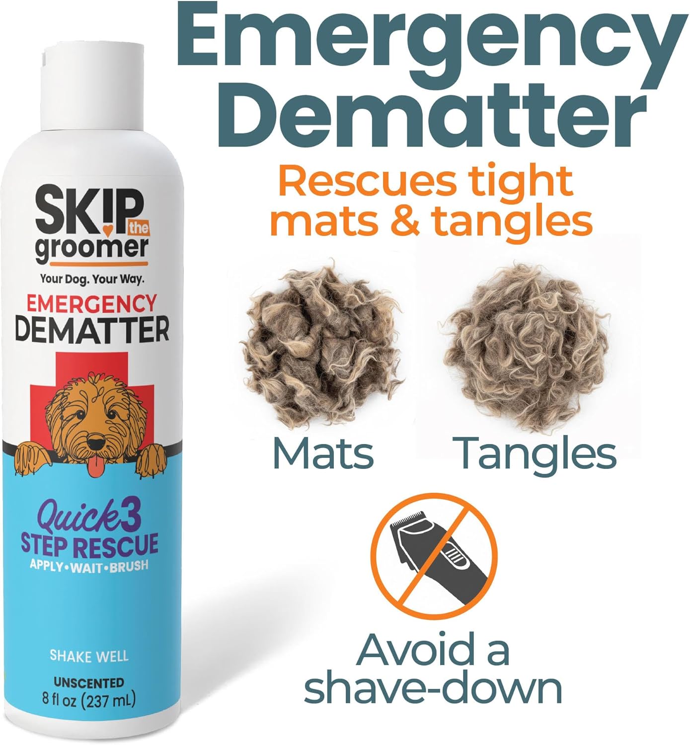 WORKS BEST WITH OUR RAKE BRUSH: Your Rescue partner. After emergency dematter cream penetrates, use the Skip the Groomer Rake Brush. Start at the ends of the mat and slowly work your way down to the skin using short strokes and patience. Eventually the mat will pull right out with the brush. Watch mats slide off without pulling or pain.