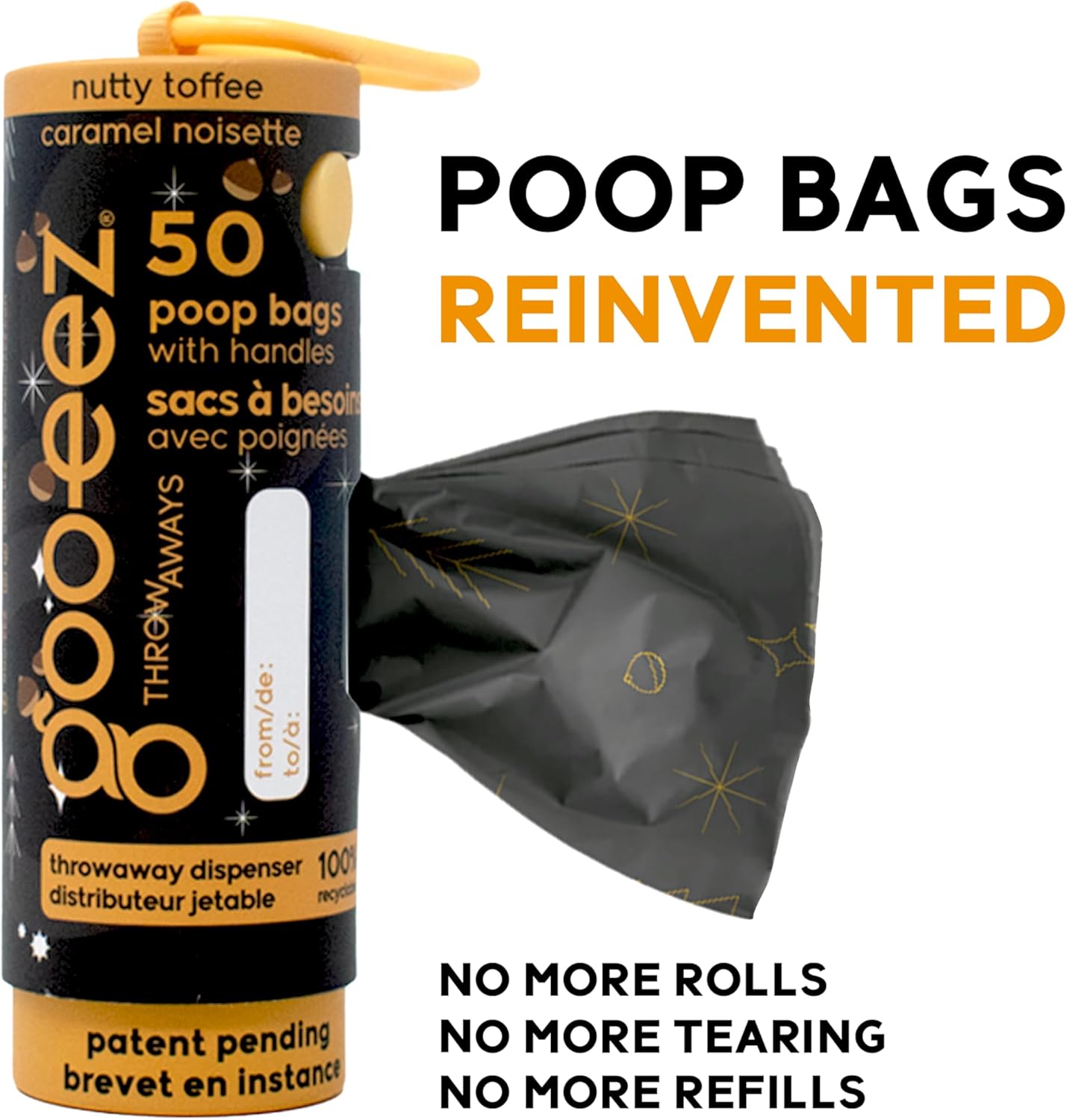 Introducing a smarter way to manage pet waste with these innovative disposable bag dispensers. Each dispenser comes pre-loaded with 50 high-quality bags featuring convenient handles for hassle-free cleanup. Available in three delightful scents – Frosted Apple, Berry Winterland, and Nutty Toffee – these dispensers revolutionize the traditional poop bag experience. No more struggling with rolls or messy refills – simply twist the bottom to dispense a bag and you’re ready to go. The clever design includes a carabiner to easily clip onto leashes or belt loops, making walks more convenient than ever. Made with 65% recycled materials, the throwaway dispensers themselves are 100% recyclable – when empty, just recycle and start fresh with a new scent. The patent-pending design ensures smooth dispensing every time, while the compact size fits comfortably in your pocket. Each bag features easy-tie handles for quick, clean pickups without any tearing or hassle. Perfect for daily walks and adventures with your four-legged friend.