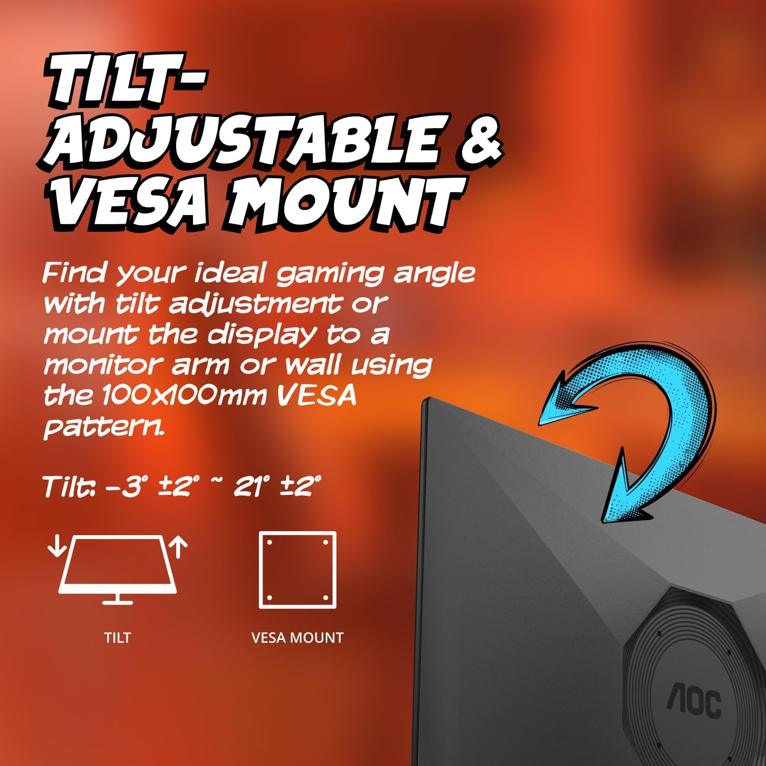 The AOC GAMING 27G51Z is a 27 inch FHD gaming monitor designed to deliver the ultimate gaming performance with fast response times and smooth visuals. With a 240Hz refresh rate and 0.5ms (MPRT) response time, this monitor is built to keep up with the most demanding games, ensuring you never miss a beat during fast-paced action. The Adaptive-Sync technology eliminates screen tearing and stuttering for seamless gameplay and providing an immersive gaming experience. Ergonomically designed with tilt adjustability, the 27G51Z ensures you stay comfortable during long gaming sessions. The monitor is also VESA mount compliant, offering flexibility for various setups. With multiple connectivity options, including HDMI 2.0 and DisplayPort 1.4, this monitor ensures compatibility with your gaming rig and other devices.