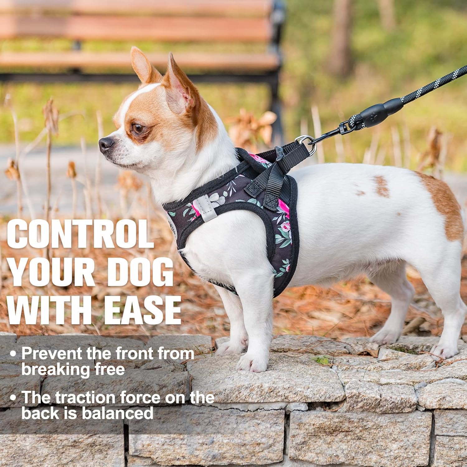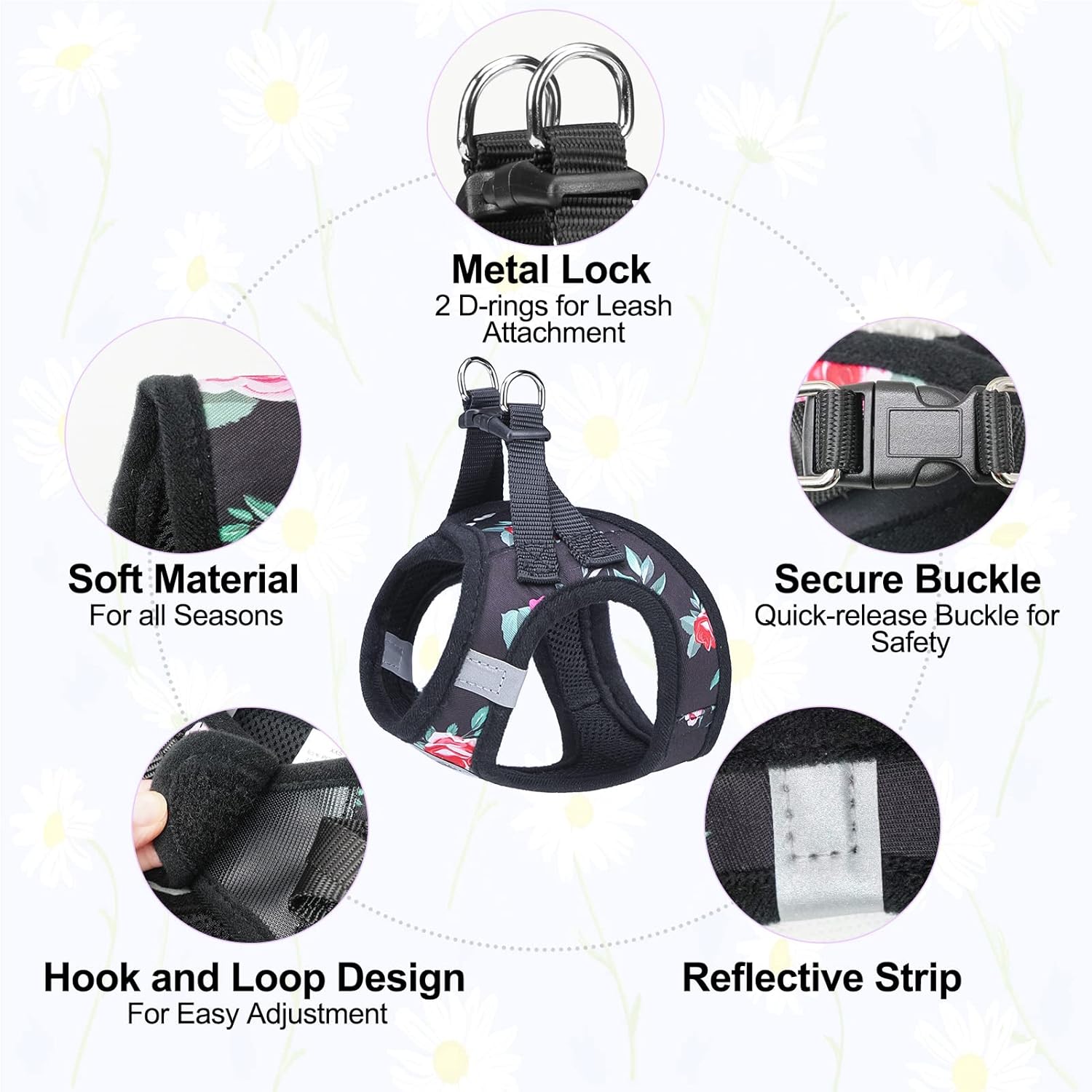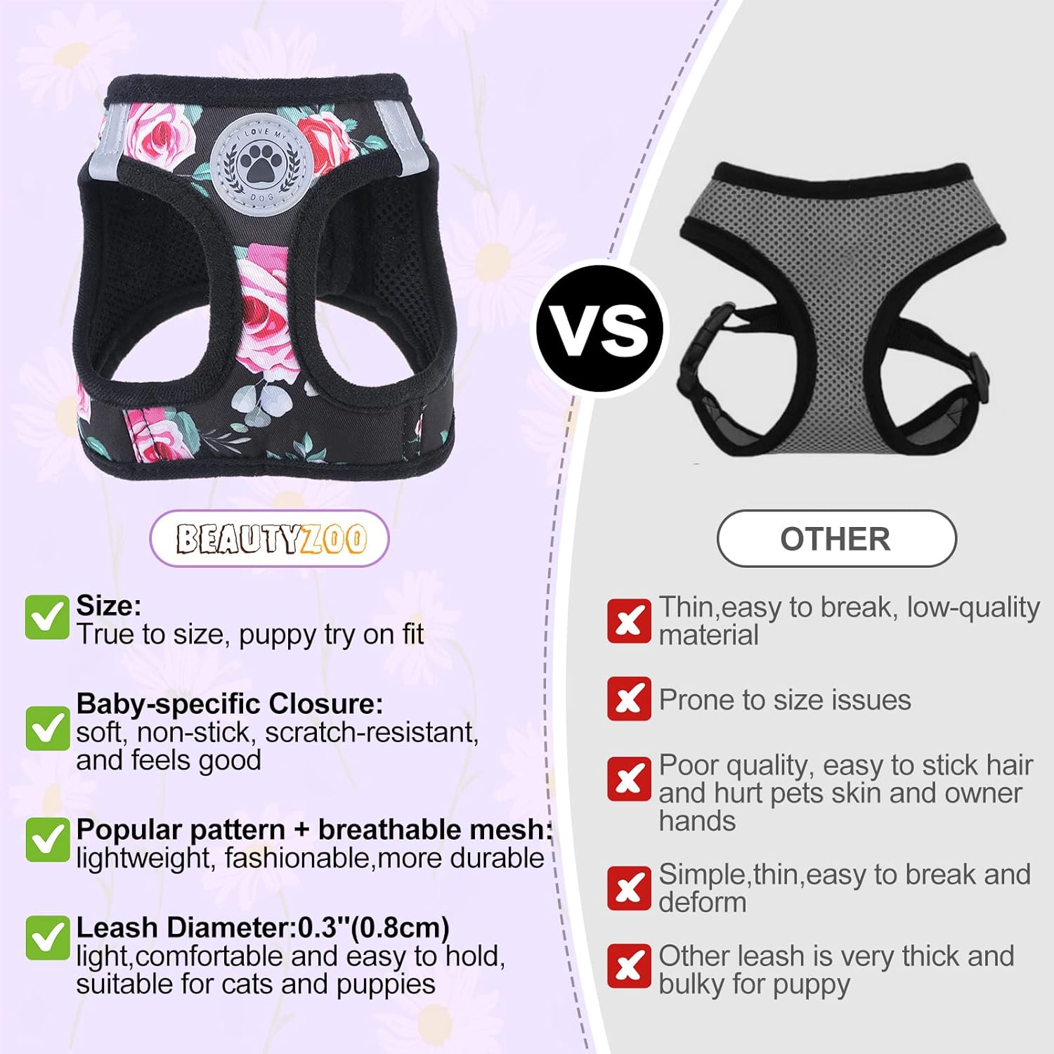 BEAUTYZOO Step in Dog Harness and Leash Set, Floral Pattern Reflective Dog Harness No Pull No Choke Puppy Harness for XXS XS S Dogs Cats, Soft Padded Mesh Vest Harnesses for Girl and Boy Pets