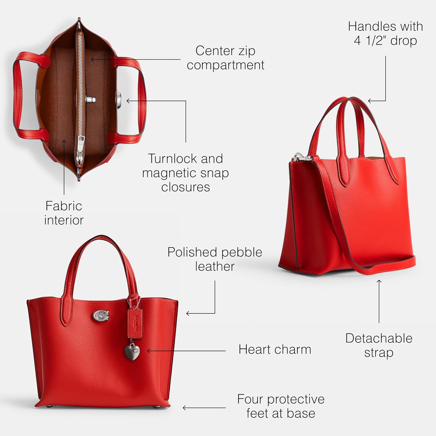 Coach Polished Pebble Leather Willow Tote 24 with Heart Charm
