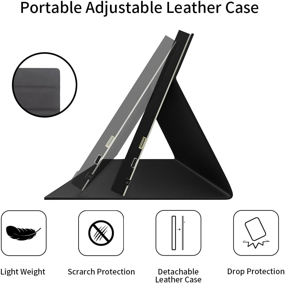 Portable Leather Stand: The Raspberry Pi display comes with a leather protective case, which is ultra-lightweight and easy to carry, effectively reducing damage from impact. The leather stand has 2 adjustable angles, which can be placed freely according to your needs.There are two removable screws on the back, and the holster can be removed after unscrewing, which is easy and convenient.