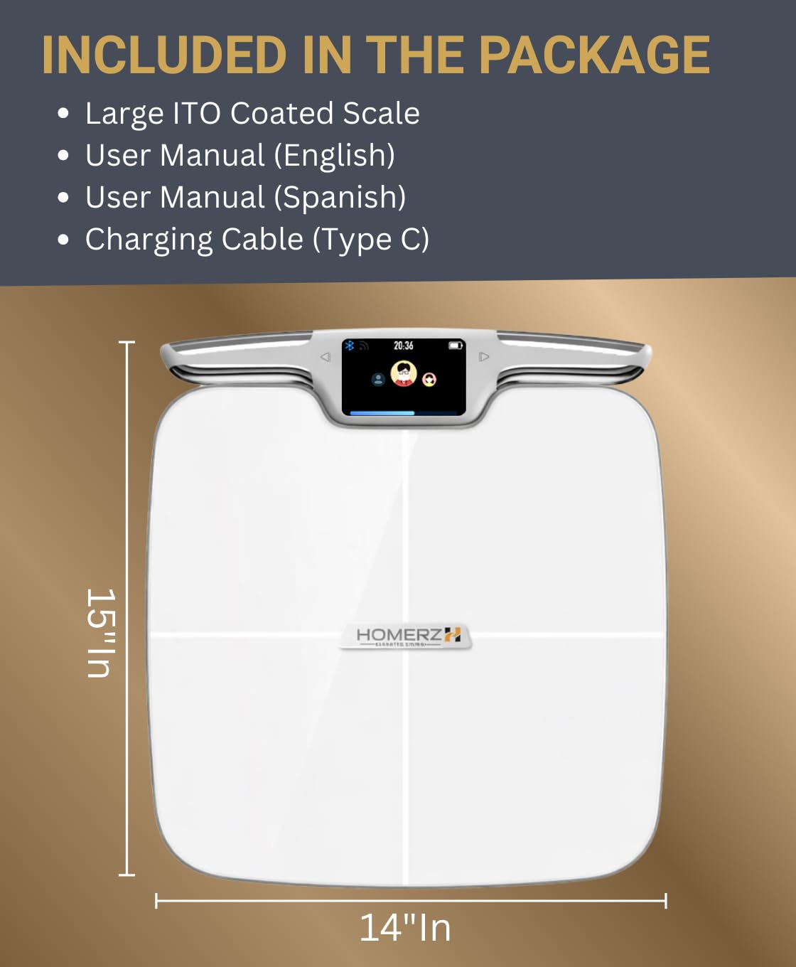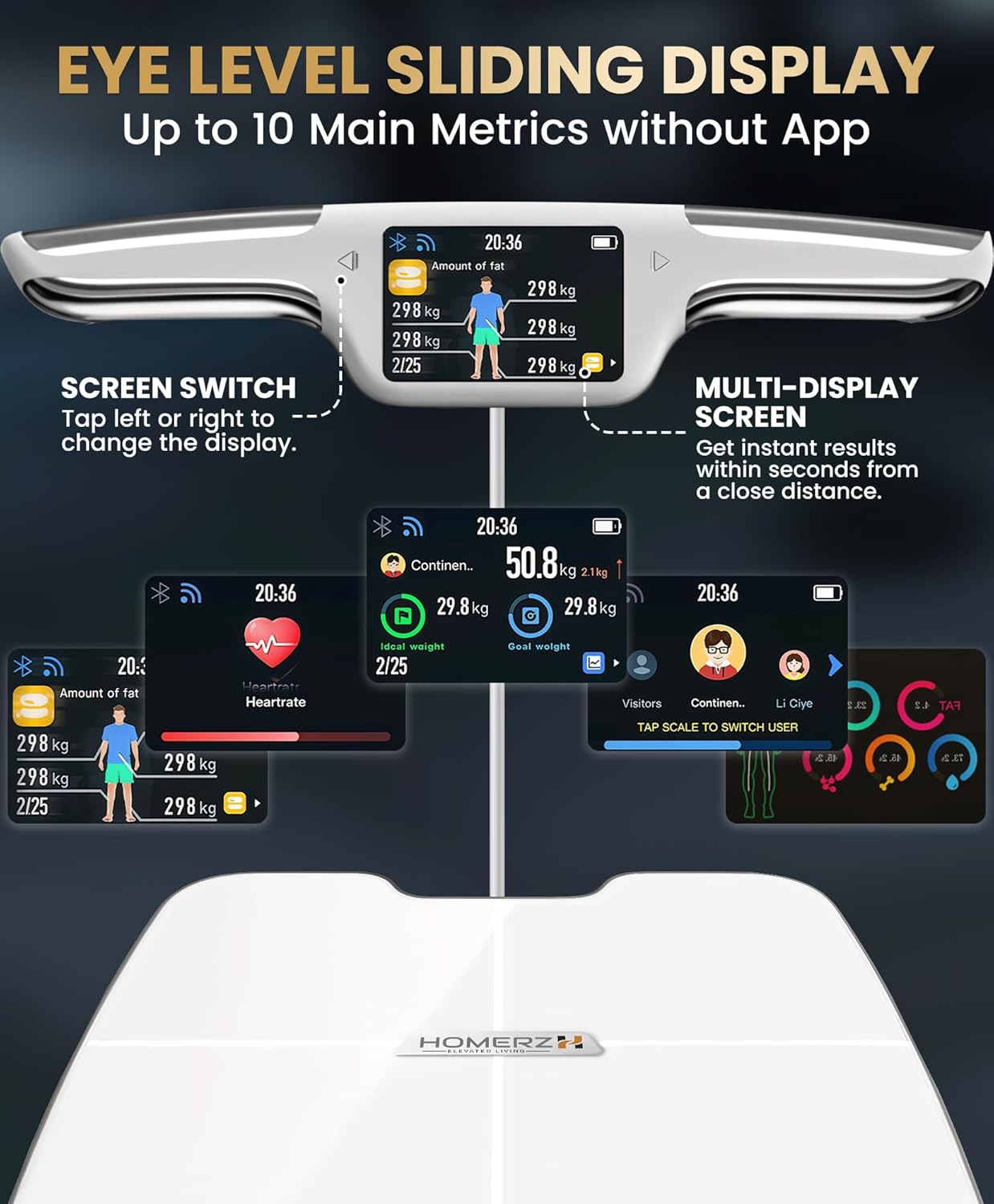Homerz Body Fat Scale – Smart Scale with BMI, Body Fat, Muscle Mass, Full Body Composition Scale with Body Fat Analysis, Body Scan Scale with Handle, Body Scanner, Biometric Analyzer