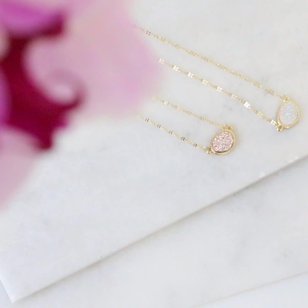 Humble Chic Simulated Druzy Pendant Necklace for Women with Sparkly Oval Stone – Gold, Silver, or Rose Gold Tone Chain – 16″ with 3″ Extender