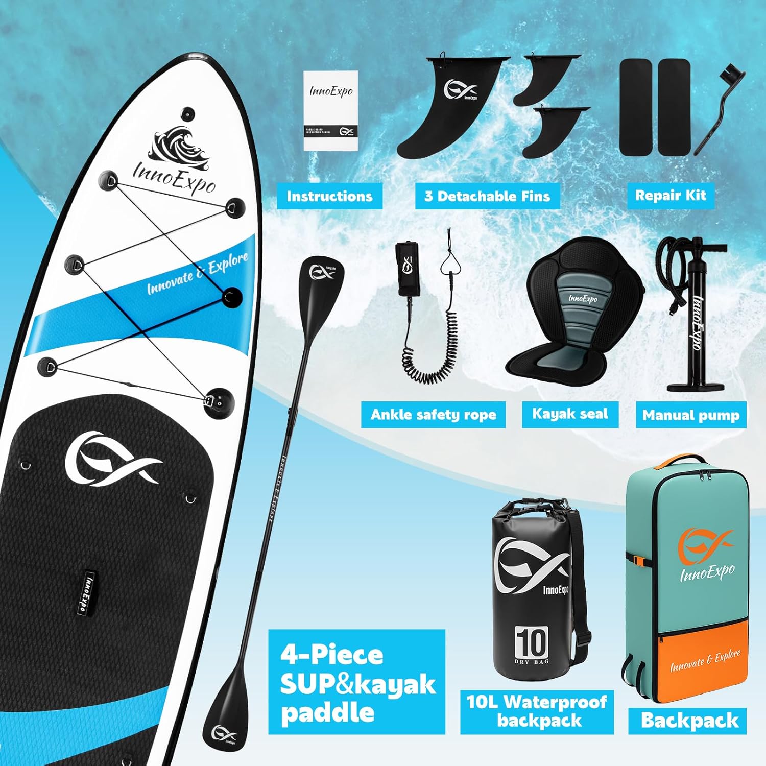 InnoExpo Inflatable Stand Up Paddle Boards with Premium Accessories, Wide Stable SUP Paddle Board Design, Non-Slip Comfort Deck for Youth & Adults