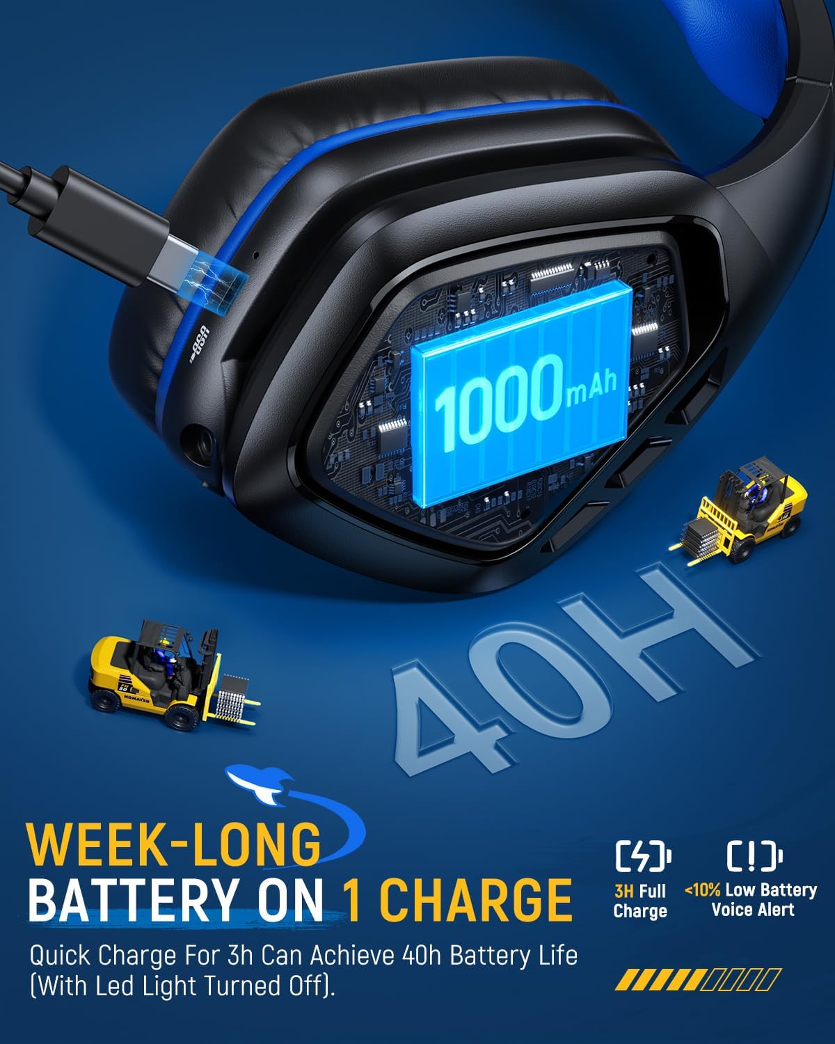 Tatybo Wireless Gaming Headset for PC, Ps5, Ps4, 2.4 Ghz USB & Type-C Gaming Headphones with Microphone, 30H Battery Bluetooth Headphones for Switch, Laptop, Mobile, Mac (Black Blue)