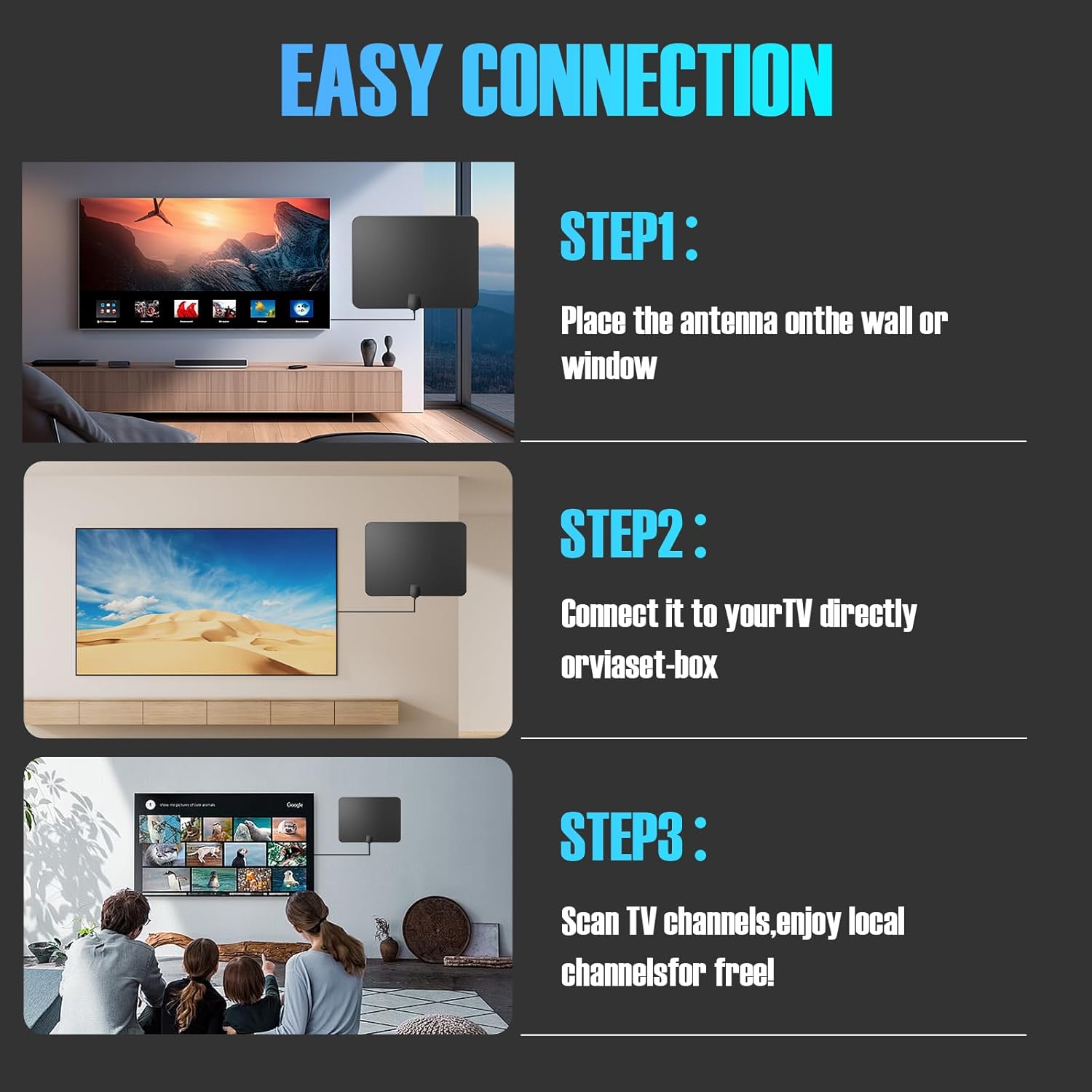 Setting up your antenna takes minutes, not hours—no tools, no professional installers, no hassle. Just follow these simple steps: