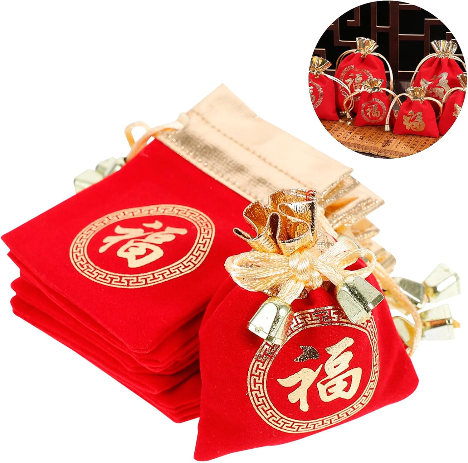 Chinese silk red pouch, chinese good luck drawstring bag embroidered brocade bag jewelry product candy pouch wedding fu bags for lunar new year 2024 adoption of , the drawstring bag is durable and long-time to use