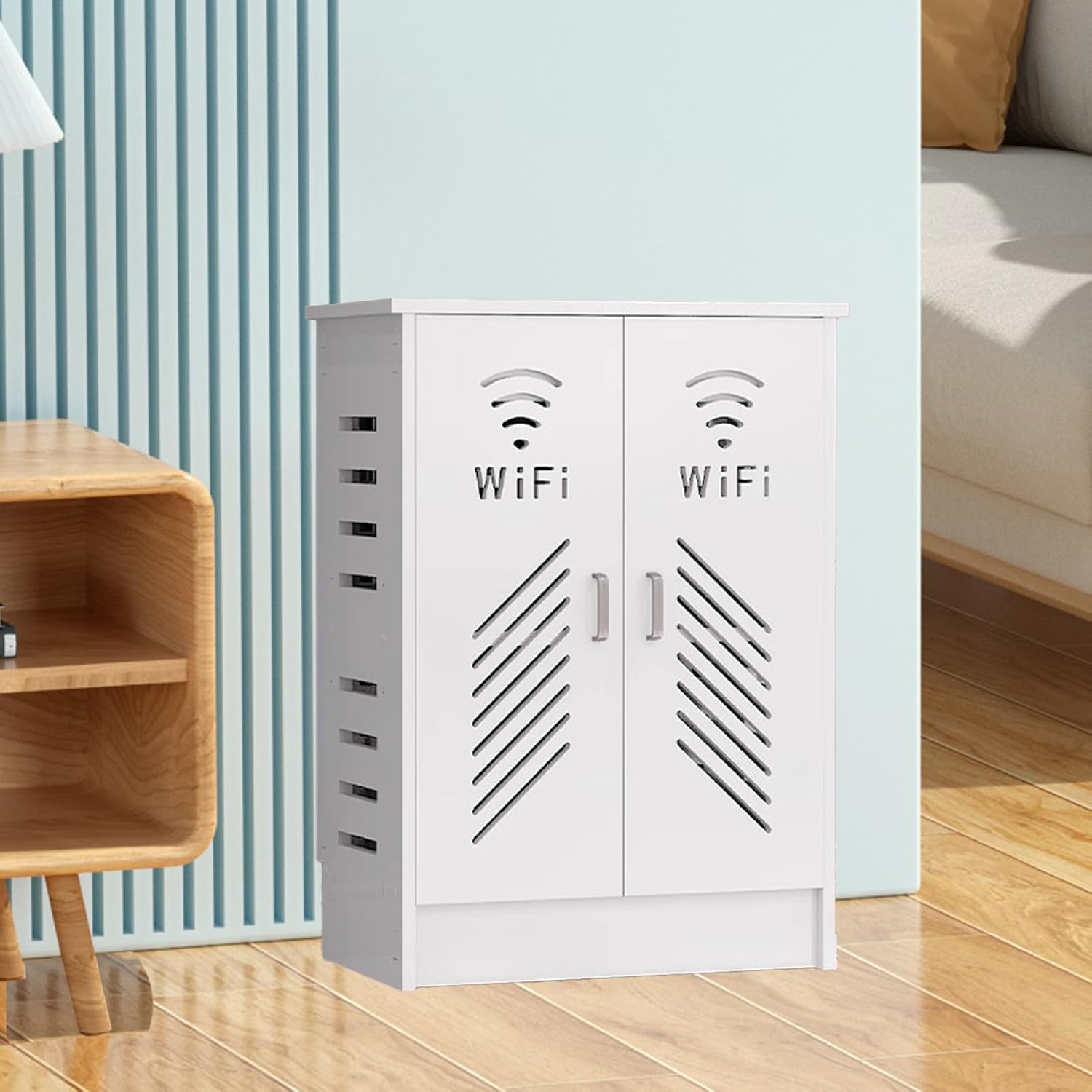 WiFi Router Storage Cabinet, Floor Standing Router Decorative Storage Box, Power Strip Cable Management Hider Organizer, Router Modem Cover for Home Office (White)